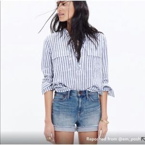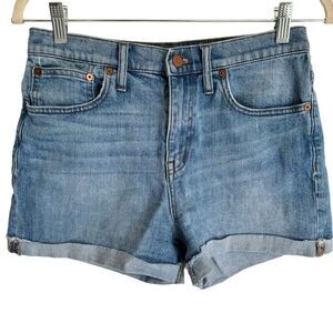 Madewell Blue High Rise Waisted Cut Out Denim Jean Shorts Size 28 Light Wash