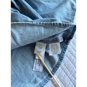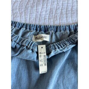 Stylish off-shoulder blouse. Light blue denim fabric. Perfect for casual wear. New with tags. Never been worn, just not right fit.