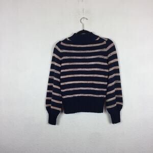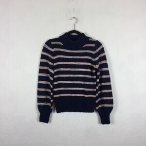 $98 Madewell Striped Metcalf Mockneck Balloon Sleeve Wool Sweater XXS