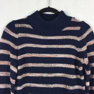 Madewell Blue Striped Wool Sweater XXS Metcalf Mockneck Balloon Sleeve Chunky