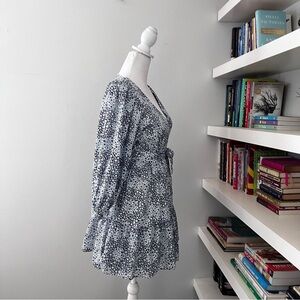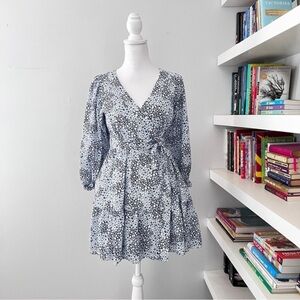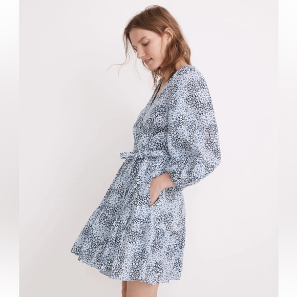 Madewell Blue & White Crinkle Wrap Mini Dress in Quilted Floral Sz 2