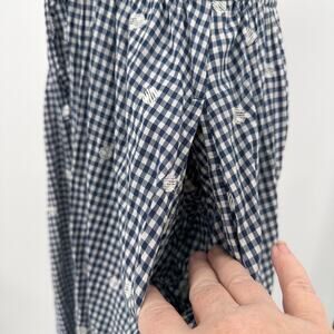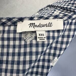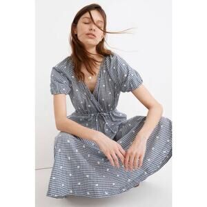 Madewell Blue White Faux Wrap Embroidered Gingham Check Midi Dress XXS Tie Waist