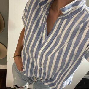 Madewell Blue + White Stripe Short Sleeve Button Down – Size Small