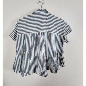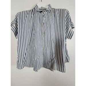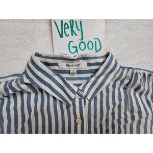 Madewell Blue & White Striped Short-Sleeve Button-Up Blouse Womens Medium Casual