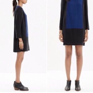 Madewell Blue and Black Colorblock Dress Back Zipper Silk Blend Small