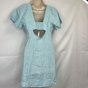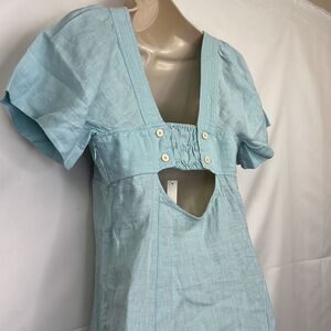 Madewell Blue Heron Linen Square-Neck Mini Dress NWT