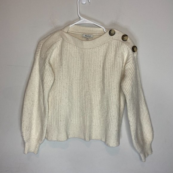 Madewell Boatneck Button Shoulder Sweater Womens XS Ivory Wool Blend PILLING