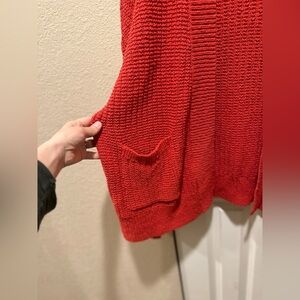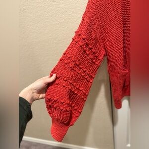 Madewell Bobble Cardigan Sweater Red Open Front Knit Boho Cottagecore, XXL