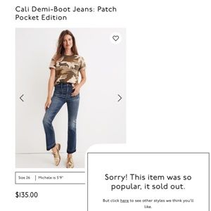 Front rise: 9 1/2"; inseam: 26"; leg opening for size 25: 16 1/4".
