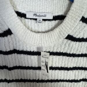 Madewell Bouclé-Knit Sweater Tank WMNS XS Cream Black Striped Crew Neck Pullover
