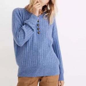 Madewell Bowden Henley Sweater Coziest Yarn Women's XS Preppy Wool Alpaca Blend
