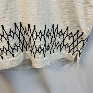 Madewell Boxstitch Slub Embroidered Cream Short Sleeve Split Neck Tunic Small