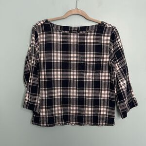Madewell Boxy "Bedford" Flannel Tee 3/4 Sleeve Ink Plaid