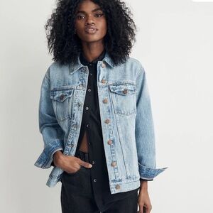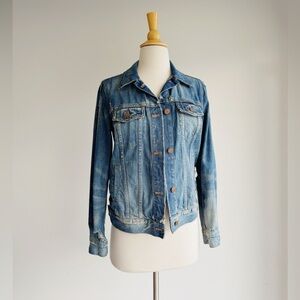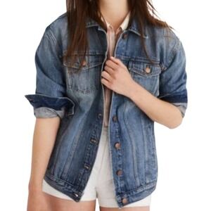 Madewell Boxy Crop Denim Jacket Hearts Print π Size M