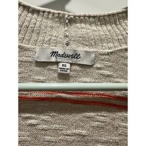 Madewell Bradley Cardigan Sweater in Textured Stripe Size XS oatmeal/coral
