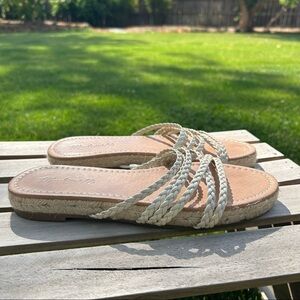 Madewell Braided Leather Slide Sandal in Cream | Size 7