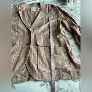 Madewell Breezewoven Larsen Windowpane Linen Blazer XL Tan White Classic NF482