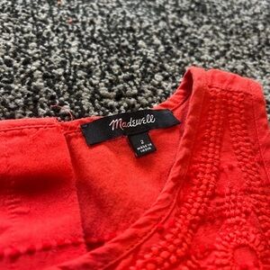 Madewell Bright Orange Embroidered Sleeveless Swing Top