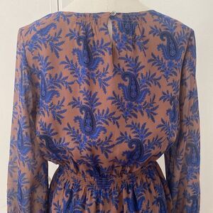 Madewell Broadway & Broome Blue and Brown Silk Paisley Mini Dress Size 6