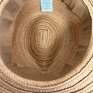 Chic Madewell straw hat. Features a cream band. Perfect for sunny days.