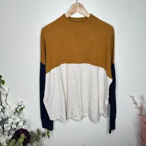 Madewell Brown and Cream Colorblock Turtleneck Sweater