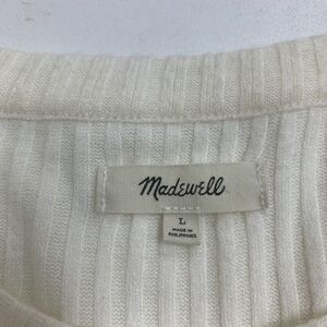MADEWELL BRUSH RIBBED TOP WOMENS L LARGE CREAM 3/4 PLEAT BLOUSON SLEEVE SWEATER