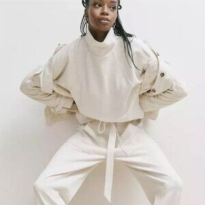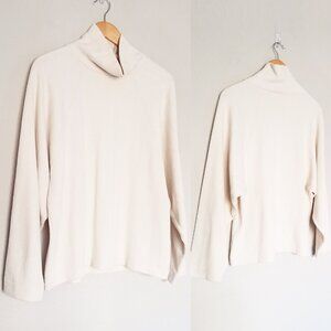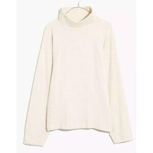 Madewell Brushed Herringbone Jacquard Turtleneck Top Funnel Neck Cream Ivory S