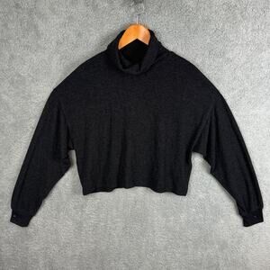 Madewell Brushed Jersey Funnel Neck Sweater cropped Dark Gray Heather Size L