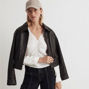 Relaxed with ruching along the front, this V-neck top is crafted of a drapey brushed fabric. Pair with your favorite jeans for an effortless look.