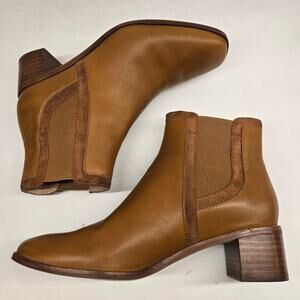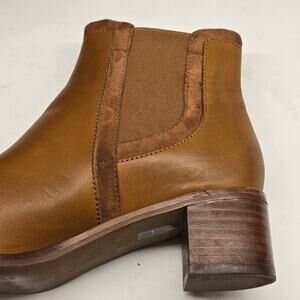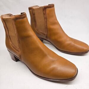 Madewell Brynn Brown Leather Chelsea Stacked Heel Pull-On Ankle Booties, Size 7