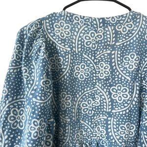 Madewell Bubble-Sleeve Button-Front Mini Dress in Indigo Paisley