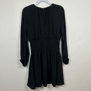 New with tag. This chiffon mini dress features long bubble sleeves and a smocked waist for a flattering fit. Its jewel neckline add a touch of elegance, making it a versatile piece for any occasion.