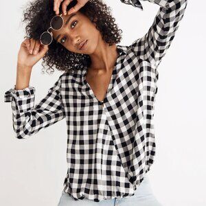 Madewell Buffalo Check Wrap-Front Shirt Size Small