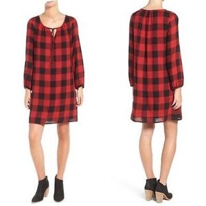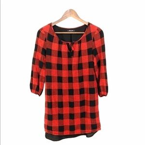 Madewell Buffalo Plaid Red & Black Wool Blend Tie Tunic Dress