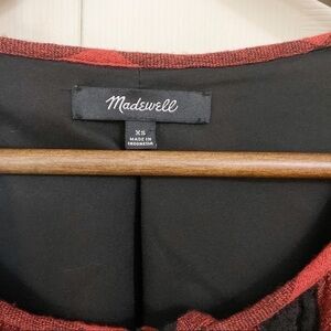 Madewell, Black & Red, Buffalo Plaid, Wool Blend, Tie Neck, Tunic Shirt Dress. Extra button attached.