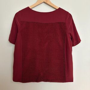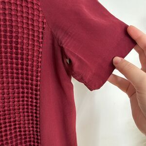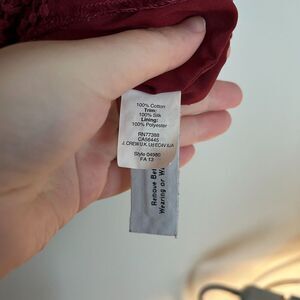 Details: top is lined, has crochet-like detail on both front and back. Silk, so its breezy and comfy.