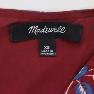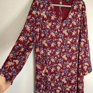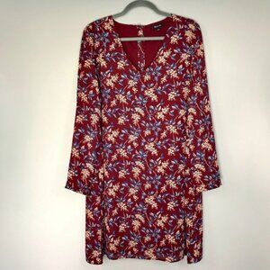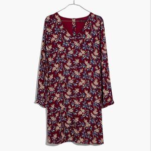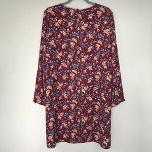 Madewell Burgundy Red Antique Floral Long Sleeve V-Neck Button-Back Shift Dress