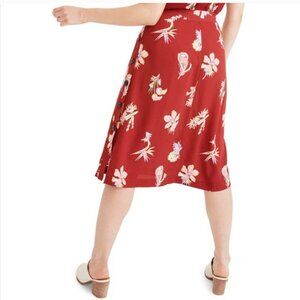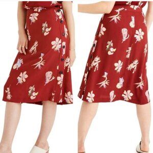 Madewell Burgundy Red Bird Of Paradise Side Button Floral Midi A-line Skirt Zero