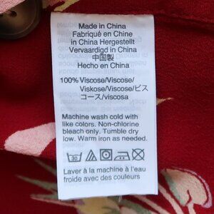 A gorgeous summertime midi skirt in a floral print. The tortoise buttons go down both sides—leave a few undone when you feel like flashing some leg. Beautiful color that can be described as a deep crimson/burgundy mix with cream, blue, purple, green, pale pink, and yellow tropical flowers on top. Lightweight, flowy, and unlined. Perfect for warm weather. Wear it with sandals and a tucked-in tee for a laid-back-meets-luxe vacation look.