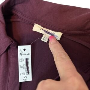 Madewell Burgundy Stretch Polo Top XS Long Sleeve Collared Jersey NWT