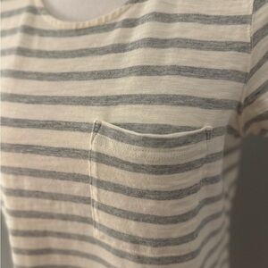 Madewell Button Back Short Sleeve Dress Cream w/Gray Striped with Buttons Size S