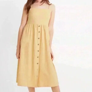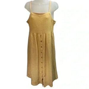 Adorable button down cami dress. Lovely yellow marigold color. Spaghetti straps. Flowy and comfy.