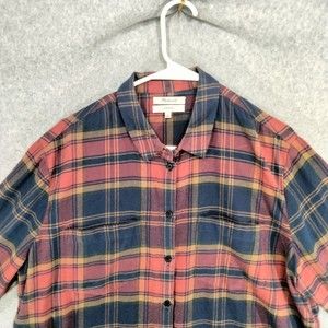 Madewell Button Down Shirt Womens Size L Red Blue Plaid Long Sleeve