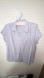 Elevate your style with this chic striped button-up top. Perfect for any occasion, this versatile piece features a classic design with a modern twist. White with light bluish grey stripes. Extra button sewn to tag. Size medium. 60% cotton 40% viscose.