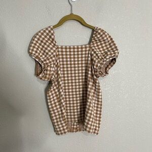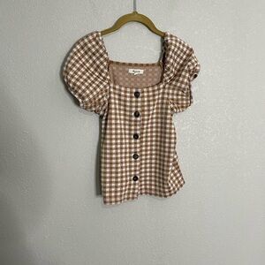 Madewell Button Front Gold Brown Gingham Plaid Blouse XXS