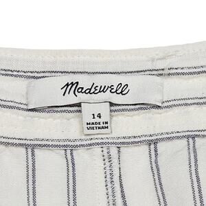 Madewell Button Front High Waist Linen Blend Mini Skirt White Blue Gray 14