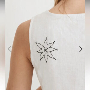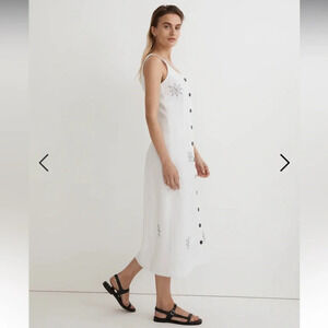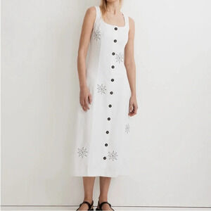 Madewell Button Front Midi Dress 100% Linen Eyelet White 10 Floral Needlepoint