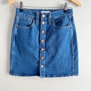 Madewell Button Front Stretch Denim Straight Mini Skirt in Arroyo Wash, Sz 25 XS