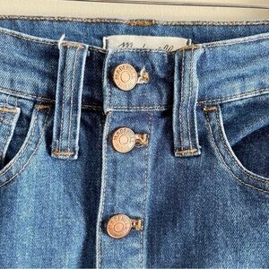 Madewell Button Front Stretch Denim Straight Mini Skirt in Arroyo Wash, Size 25