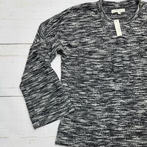 Madewell Button Shoulder Wide Sleeve Sweater Top Marled Black Crewneck Cotton XS